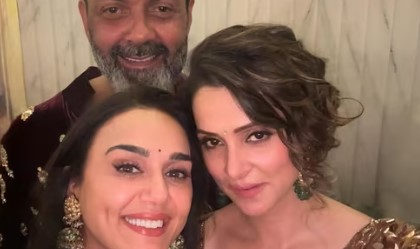 Preity Zinta recently shared a heartwarming reunion with her Soldier co-star Bobby Deol and his wife, Tanya Deol, at designer Manish Malhotra’s grand Diwali celebration. Their picture-perfect moment sent fans down memory lane, as the duo posed together after years, radiating nostalgia and festive cheer.