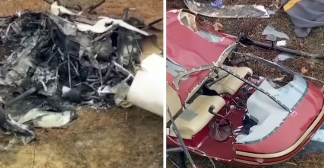 Hammonton Police Chief Kevin Friel said rescuers responded to a report of an aviation crash at about 11:25 a.m. Video from the scene shows a helicopter spinning rapidly to the ground. Police and fire crews subsequently extinguished flames that engulfed one of the helicopters.